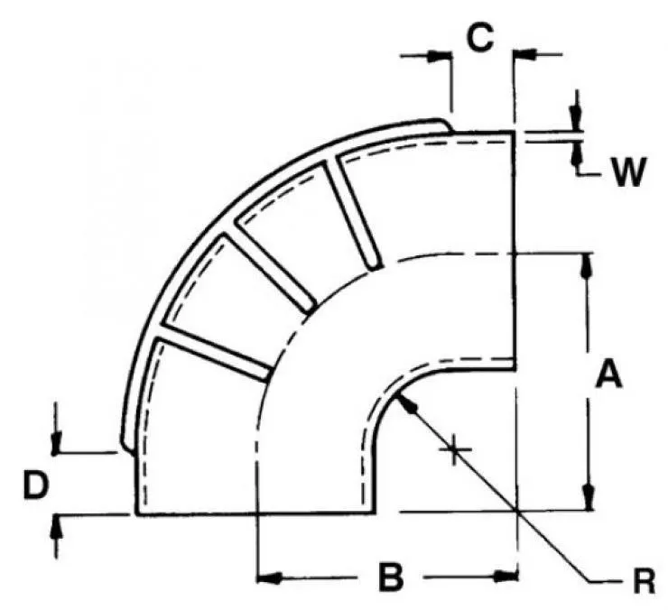 Rayon de courbure : 90 Degré °