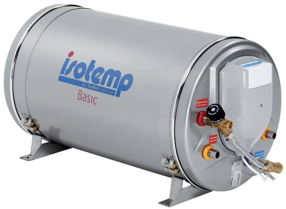 Installation horizontale ou verticale, mitigeur thermostatique et soupape de sécurité 7 bars de série. L’échangeur permet de connecter le chauffe-eau sur un circuit de chauffage à eau ‘’Hydronic’’ et/ou sur le circuit refroidissement du moteur.