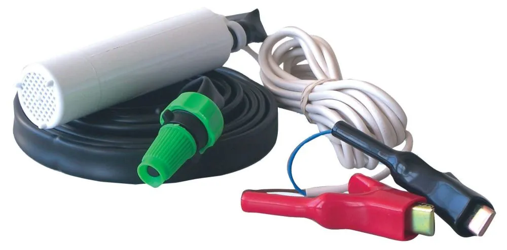 Livrées avec 4m de tuyau, câbles de 3m et pinces. Compatibles eau douce, eau de mer et gasoil.