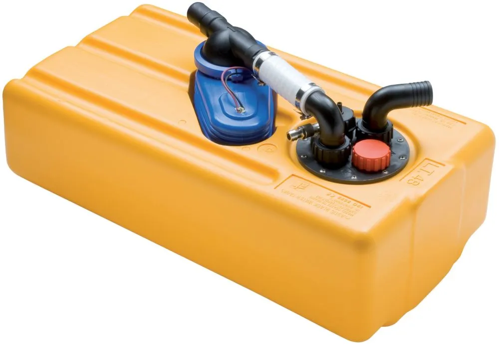 Réservoirs de stockage eaux usées, complets avec pompe de vidange 12V Jabsco et capteur de niveau.