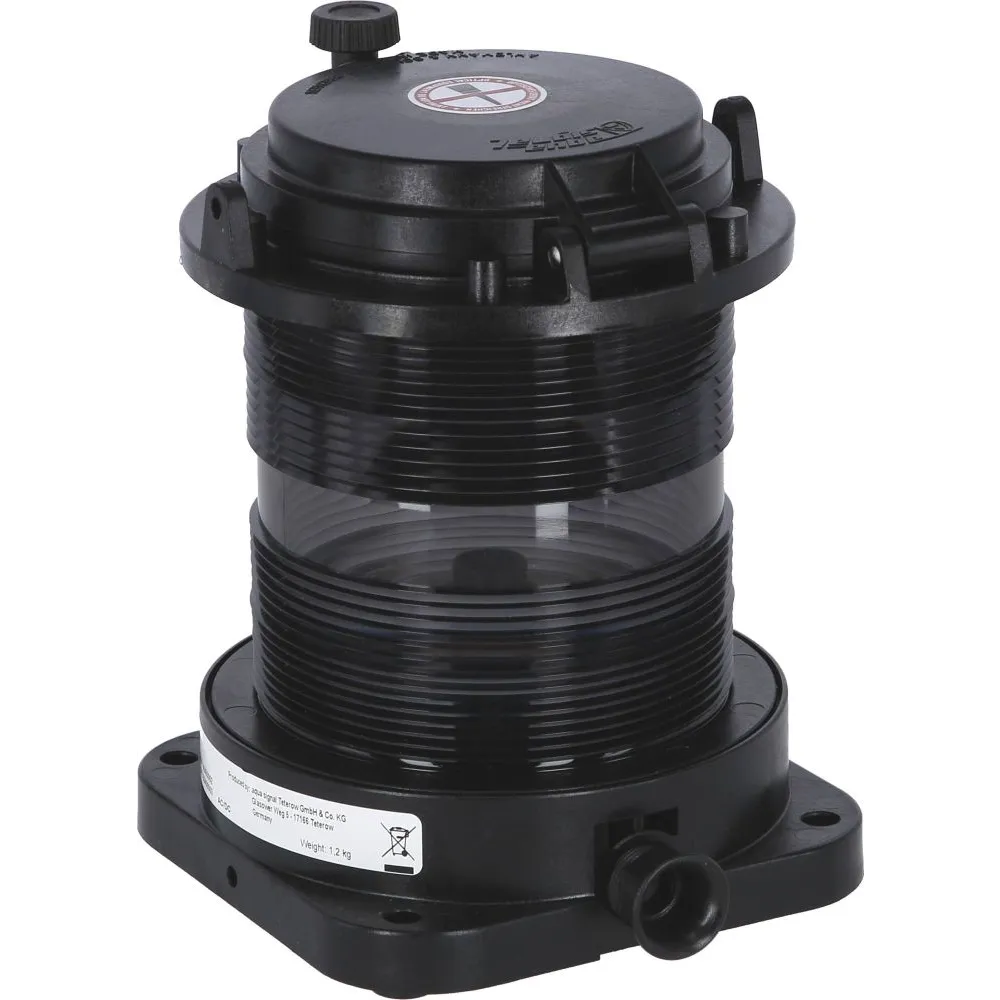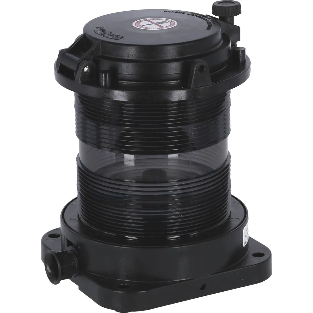 Série homologuée VERITAS. Les feux marqués d’une ancre sont homologués pour la navigation fluviale européenne. Corps en polycarbonate noir renforcé de fibre de verre et matériaux inoxydables. Norme de protection IP56. Disponible en 24V. Existe également en 12V. Disponible avec ampoule LP281 ou LP282.