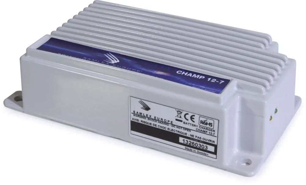 - Les composants sont montés selon la méthode CMS (Composants Montés en Surface) et donc peu sensibles aux chocs et aux vibrations. Les chargeurs sont munis d’un solide boîtier en aluminium anodisé extrudé.