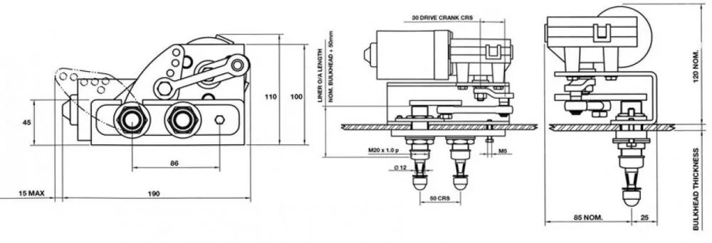 Essuie-glaces pantographes moteur extérieur Type 1850