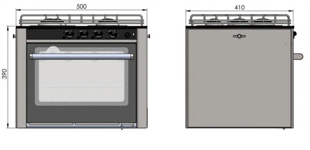 - Puissance brûleurs : 1 x 1,2kW, 1 x 2kW (1 brûleur 2kW supplémentaire pour le modèle 3 feux)