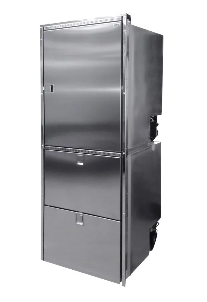 Le CRUISE COMBI LINE 320 INOX vous permet de bénéficier d’une grande capacité de réfrigération en combinant un réfrigérateur 160L en partie haute et deux tiroirs frigorifiques en partie basse. Cette solution polyvalente optimise le stockage des aliments et boissons tout en offrant un design inox Clean Touch, élégant, durable et facile à nettoyer même en environnement nautique.