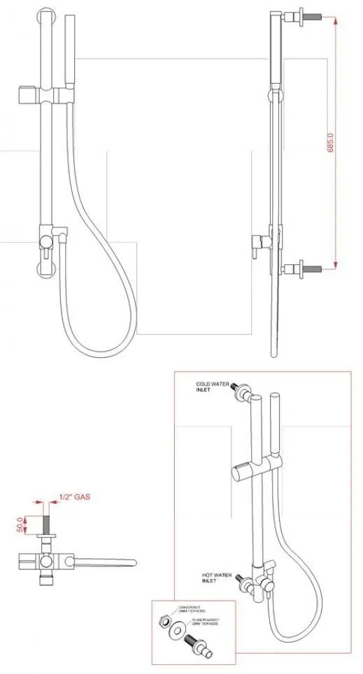 Barre de douche chromée avec mitigeur