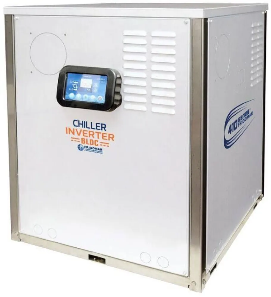 Les centrales à eau glacée Inverter au R410a fonctionnent sur le principe d’un compresseur à vitesse variable contrairement aux centrales à eau glacée conventionnelles qui fonctionnent avec des compresseurs On/Off, « tout ou rien ».