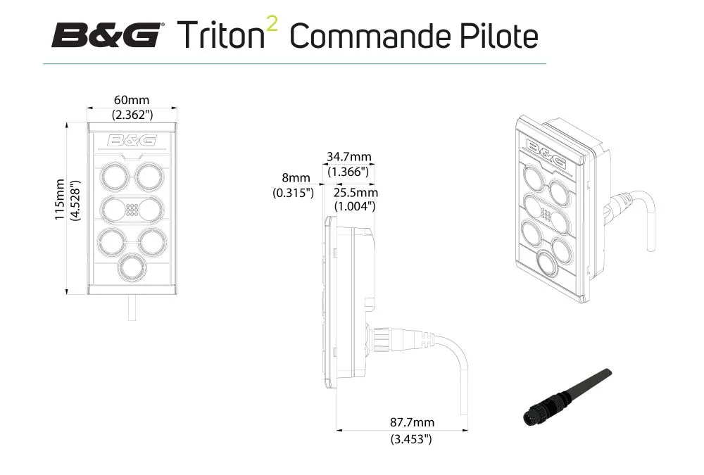 La télécommande filaire du pilote du Triton2 est facile à installer et offre une connectivité NMEA 2000 par câble unique pour l'alimentation et les données. Plusieurs télécommandes filaires et écrans Triton2 peuvent être installés pour permettre le contrôle du pilote automatique depuis n'importe où à bord.