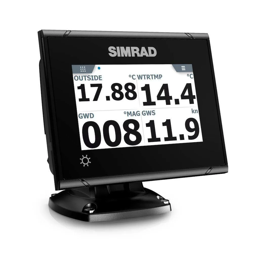 Indicateur de gouvernail : approuvé IMO lorsqu'il est connecté à un système de pilotage automatique qui dispose de l'affichage optionnel de la demande de gouvernail. Il lit les positions du gouvernail à partir de tous les retours d'informations sur le gouvernail Simrad ou est compatible avec les retours d'informations NMEA 0183 d'autres systèmes tiers.