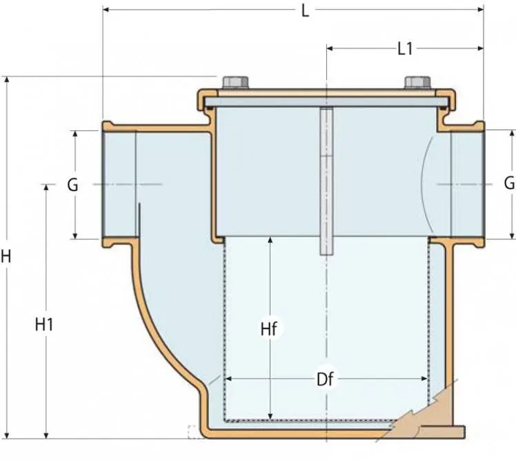 Corps en bronze nickelé, tamis et visserie en inox 316L.