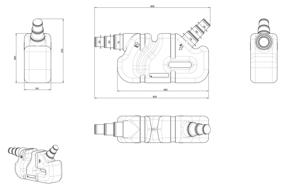 Diamètre entrée/sortie : 50-60-75 mm