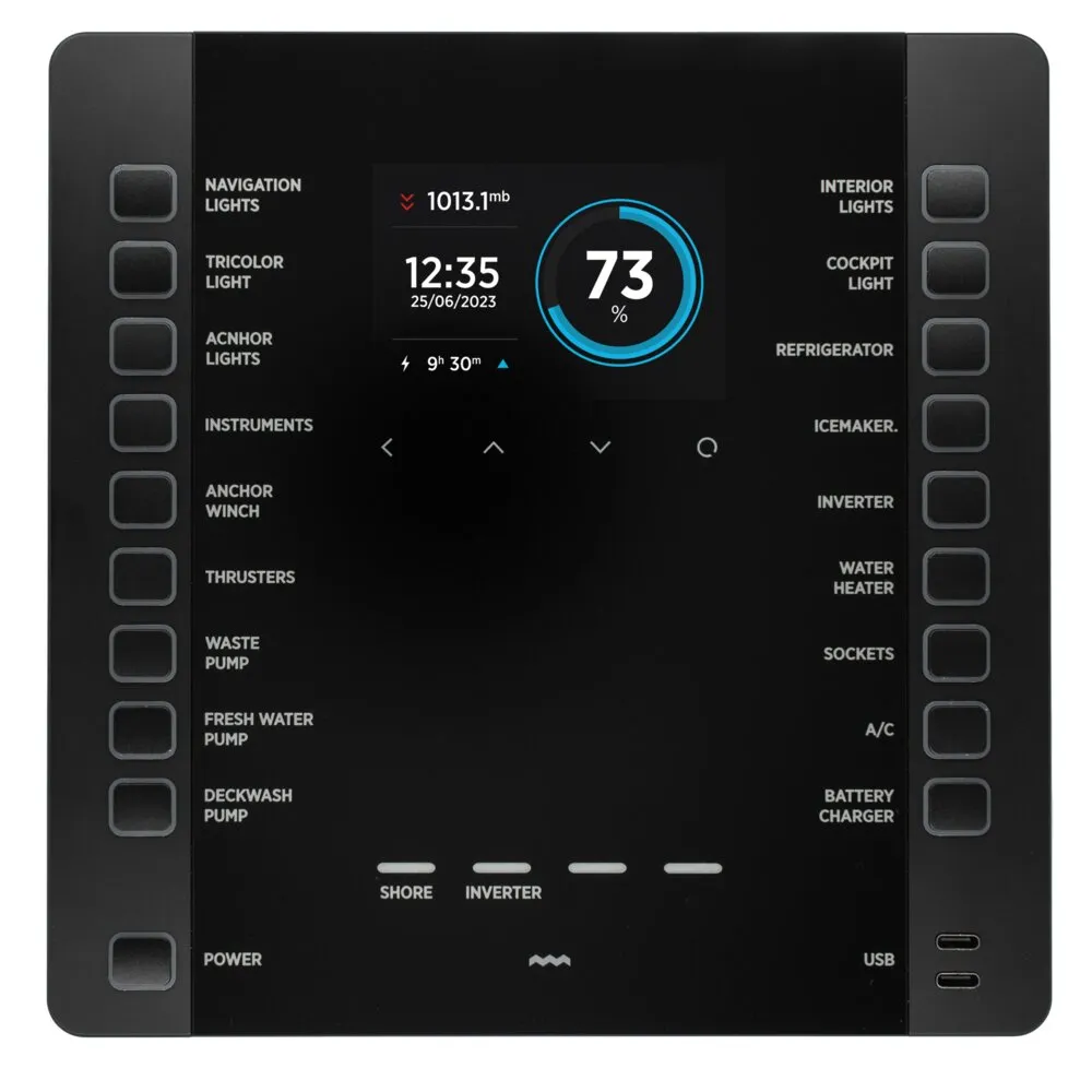 Le tableau Nereide vous apporte une solution de contrôle centralisée et élégante pour superviser l'ensemble de vos ressources énergétiques à bord. Ce panneau de distribution intelligent s'intègre parfaitement à votre poste de navigation.