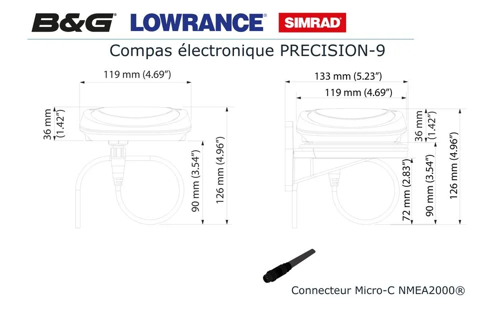 Un étrier de montage facilement réglable et une connexion par câble Micro-C NMEA 2000® permettent de l'installer facilement sur n'importe quel bateau.